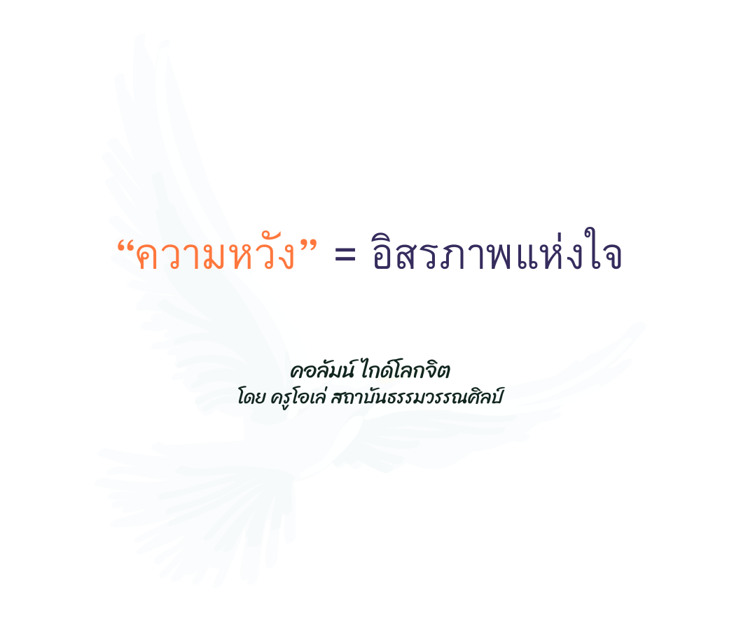 การมีความทุกข์และความผิดหวัง ไม่ได้แปลว่าเราสิ้นไร้อิสรภาพทางใจหรือขาดสุขภาพทางจิตที่ดี แต่การที่เรายังรักษาความหวังให้งอกงามได้ ท่ามกลางความมืดมนในชีวิตและสังคม แม้จะทุกข์เพียงใดหรือล้มเหลวแค่ไหน