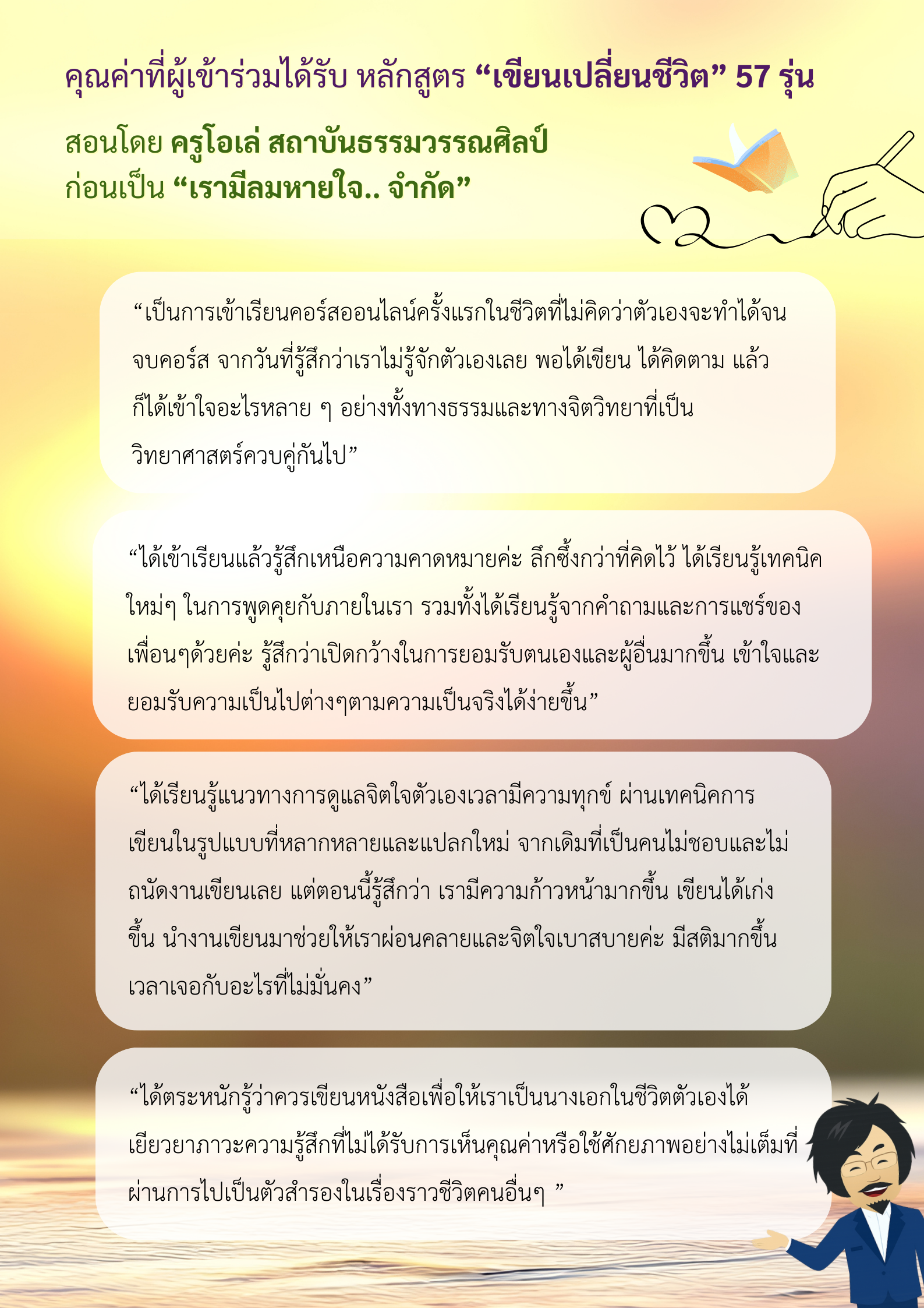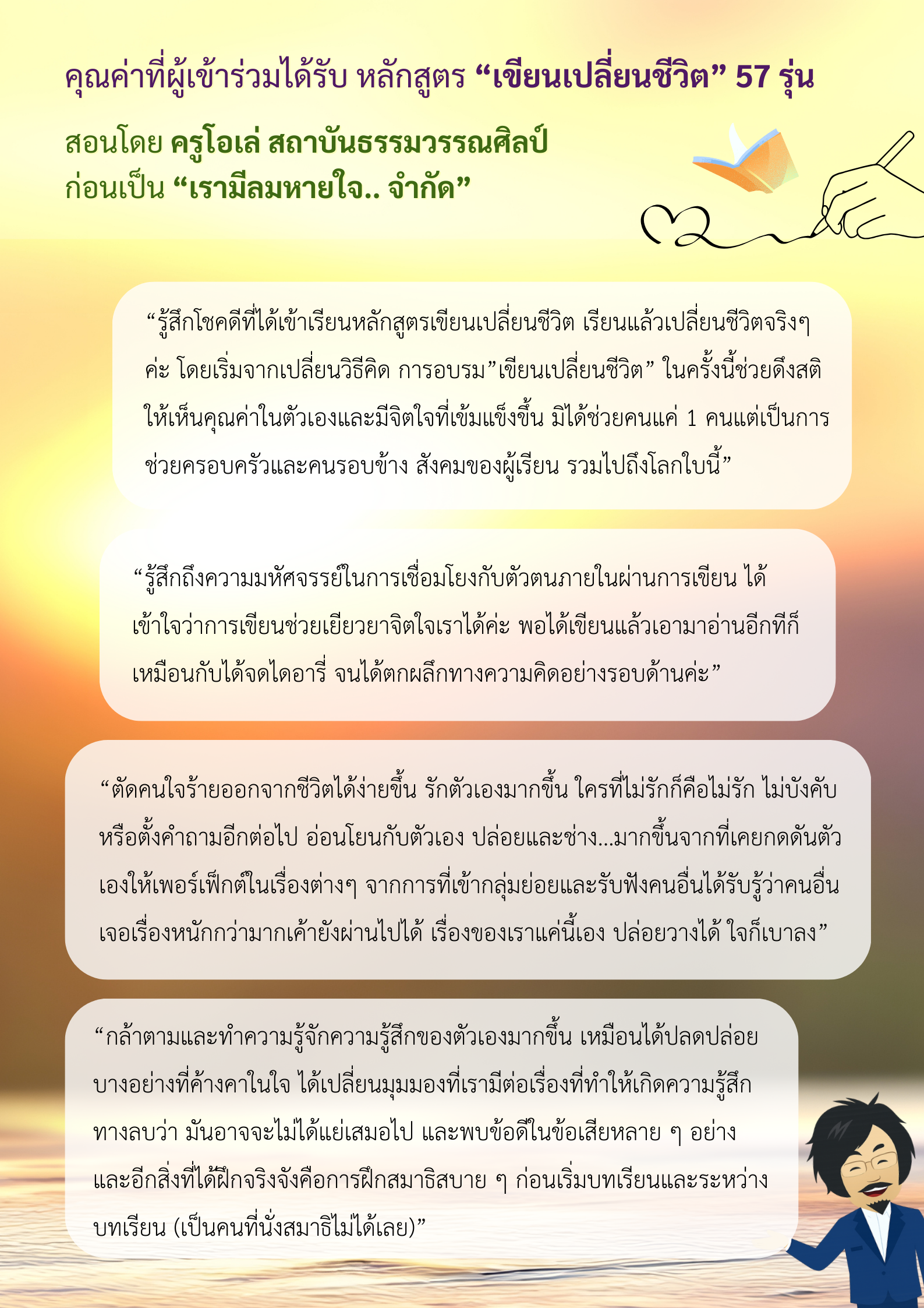 จากหลักสูตร “เขียนเปลี่ยนชีวิต” สู่หลักสูตร “การโปรแกรมจิตตัวเอง”