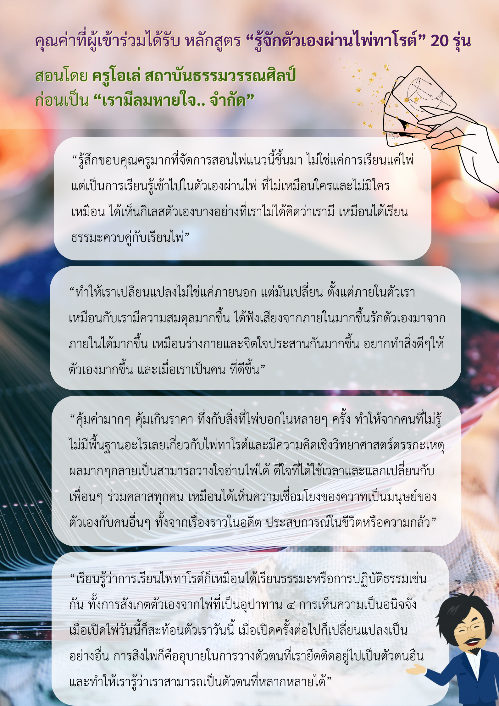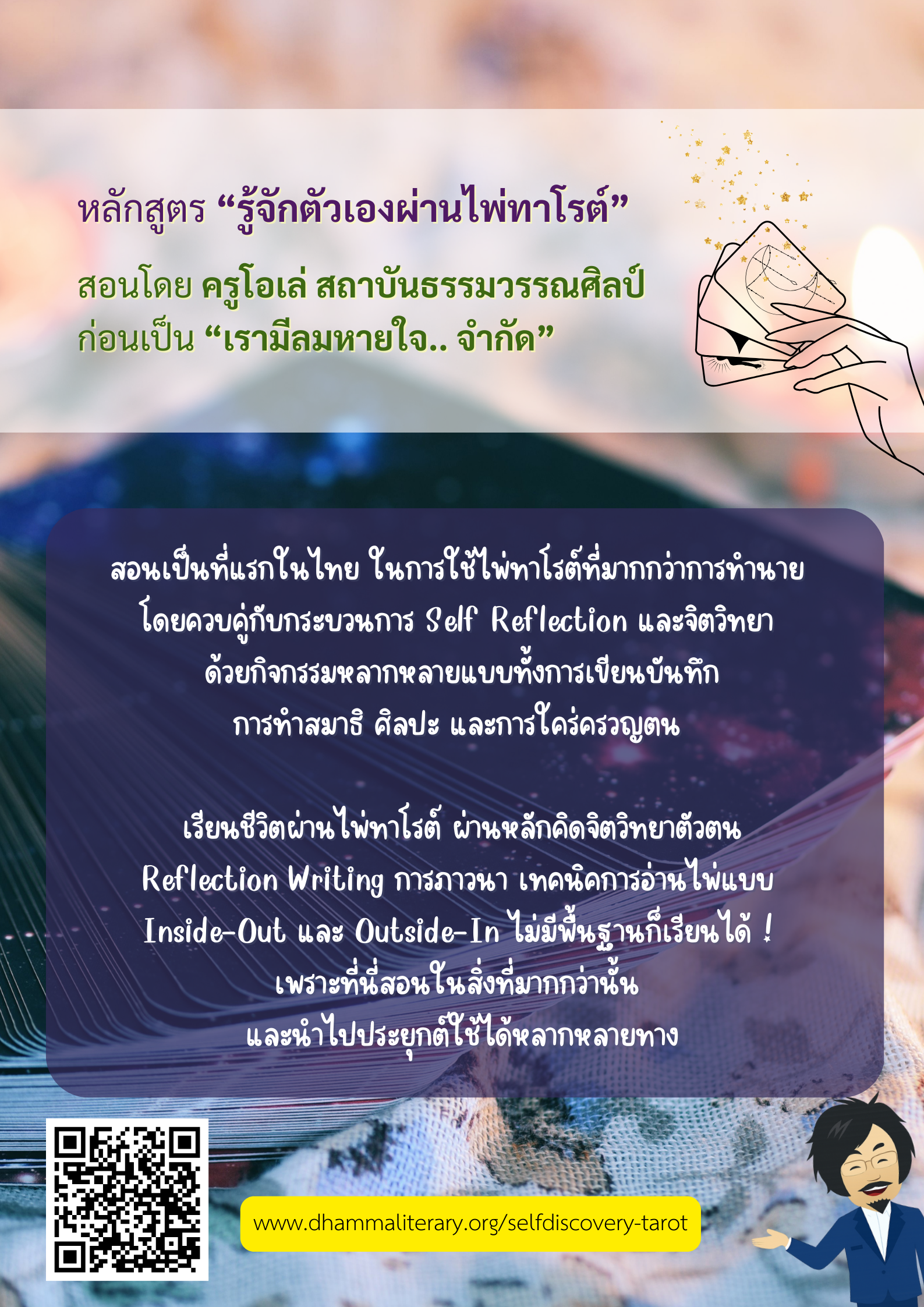 ผ่านเครื่องมือการเขียนบำบัด การเขียนภาวนา การสะกดจิตบำบัด การทำสมาธิ ไพ่ทาโรต์ และการเรียนรู้แบบออนไลน์ที่มีชีวิต